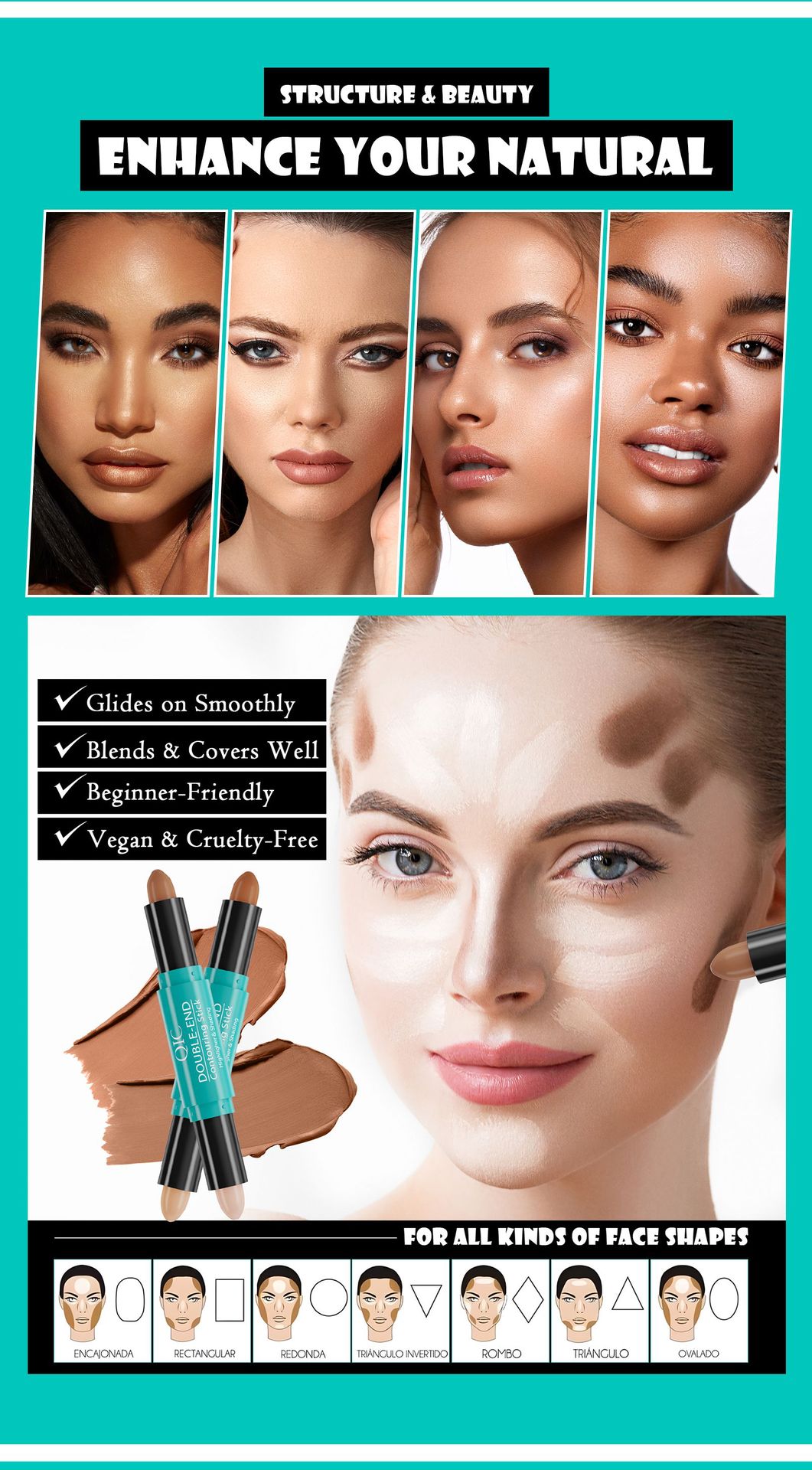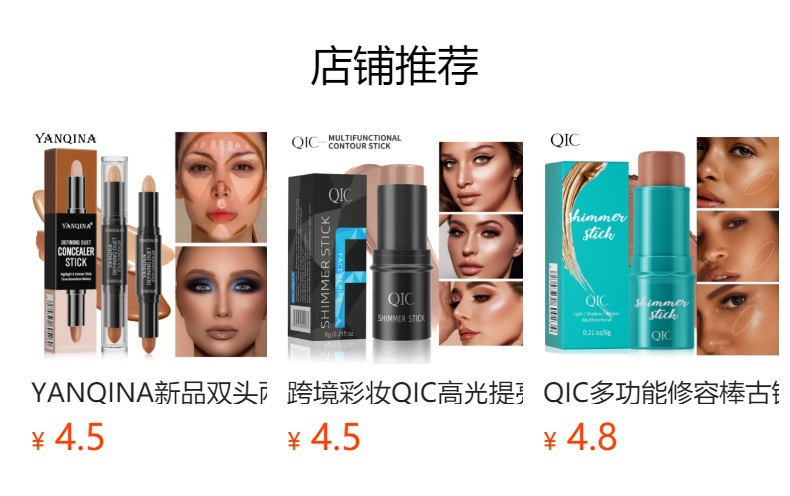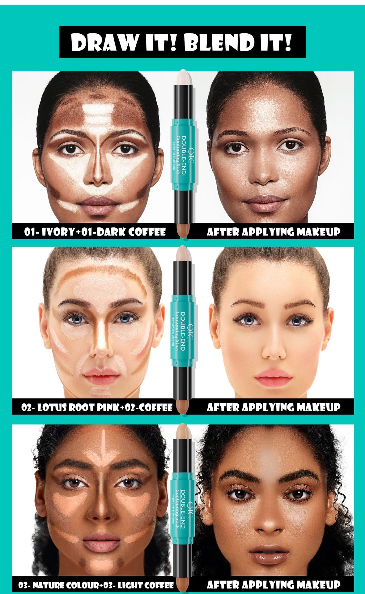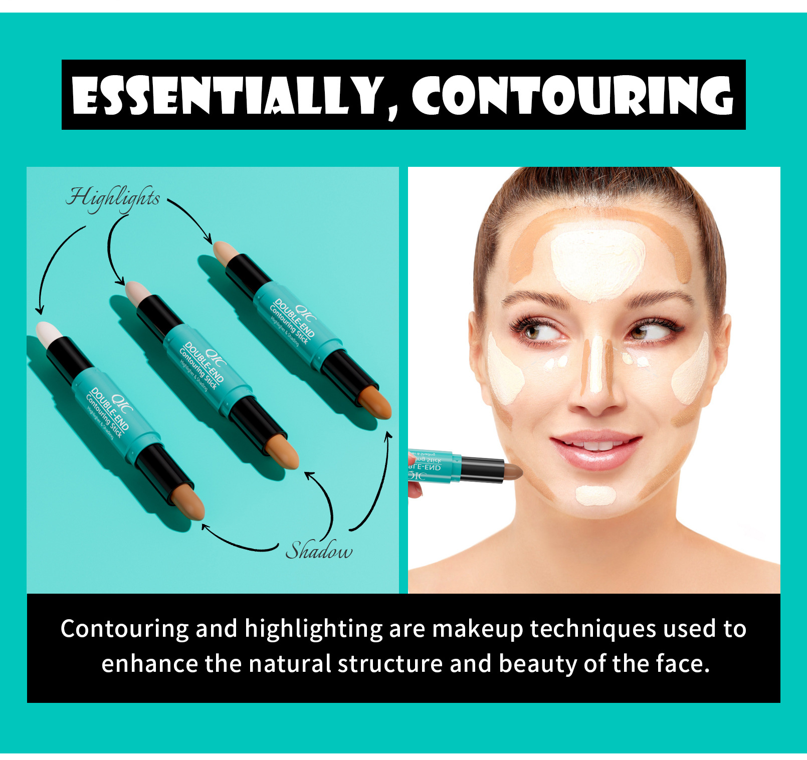 QIC绿管修容棒双头两用高光提亮遮瑕阴影自然立体化妆棒跨境彩妆