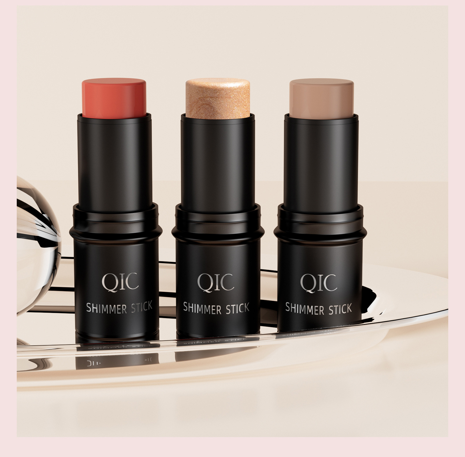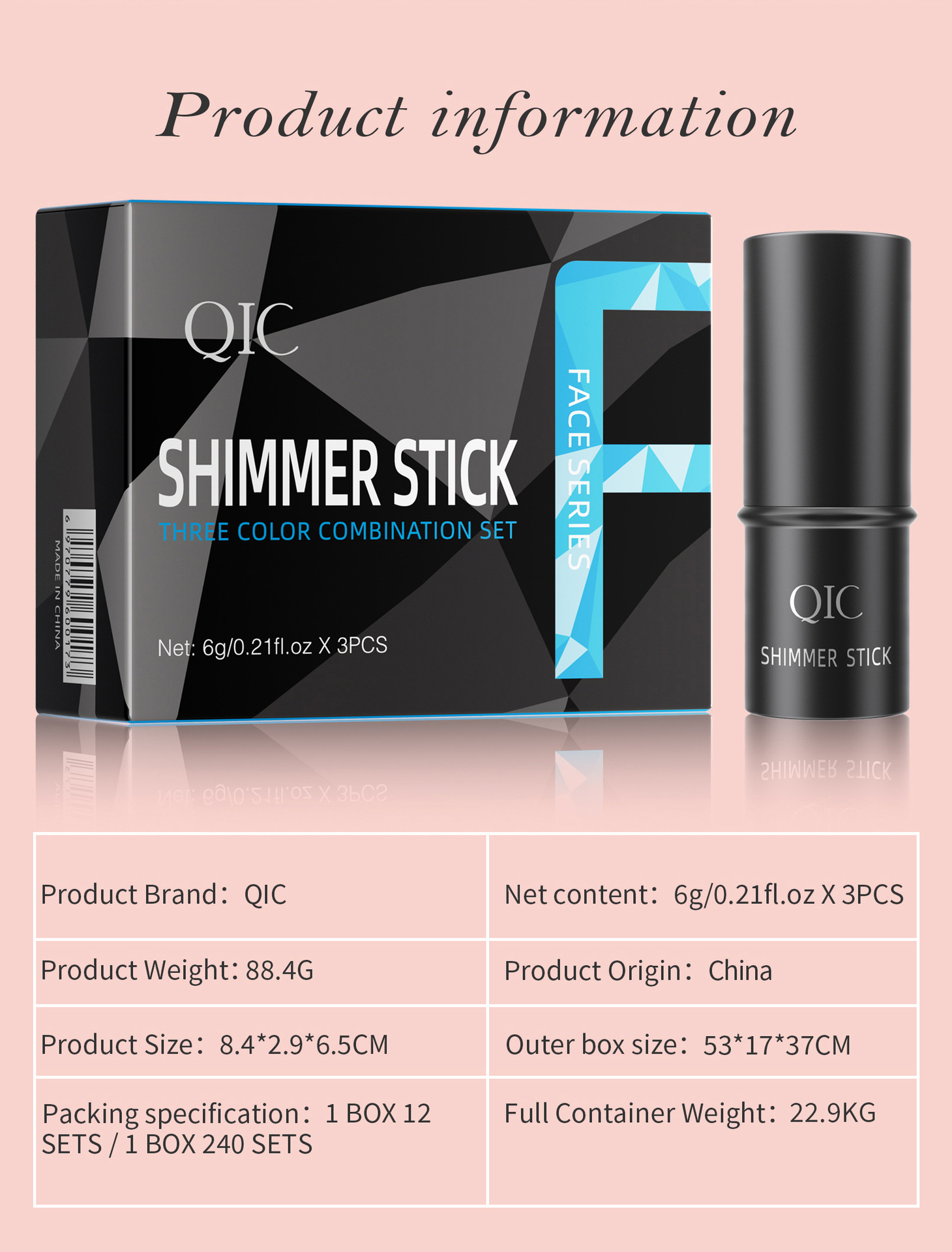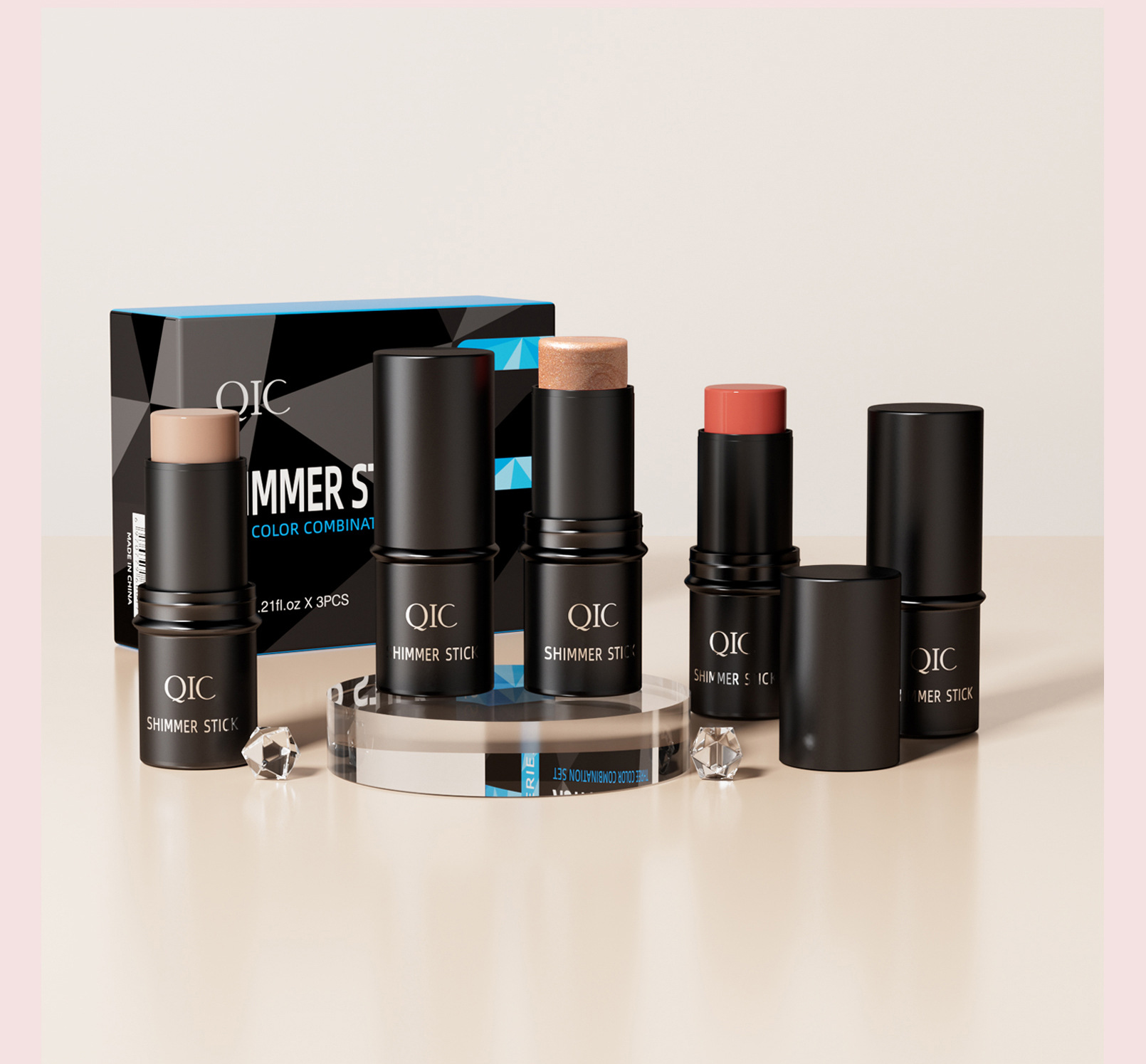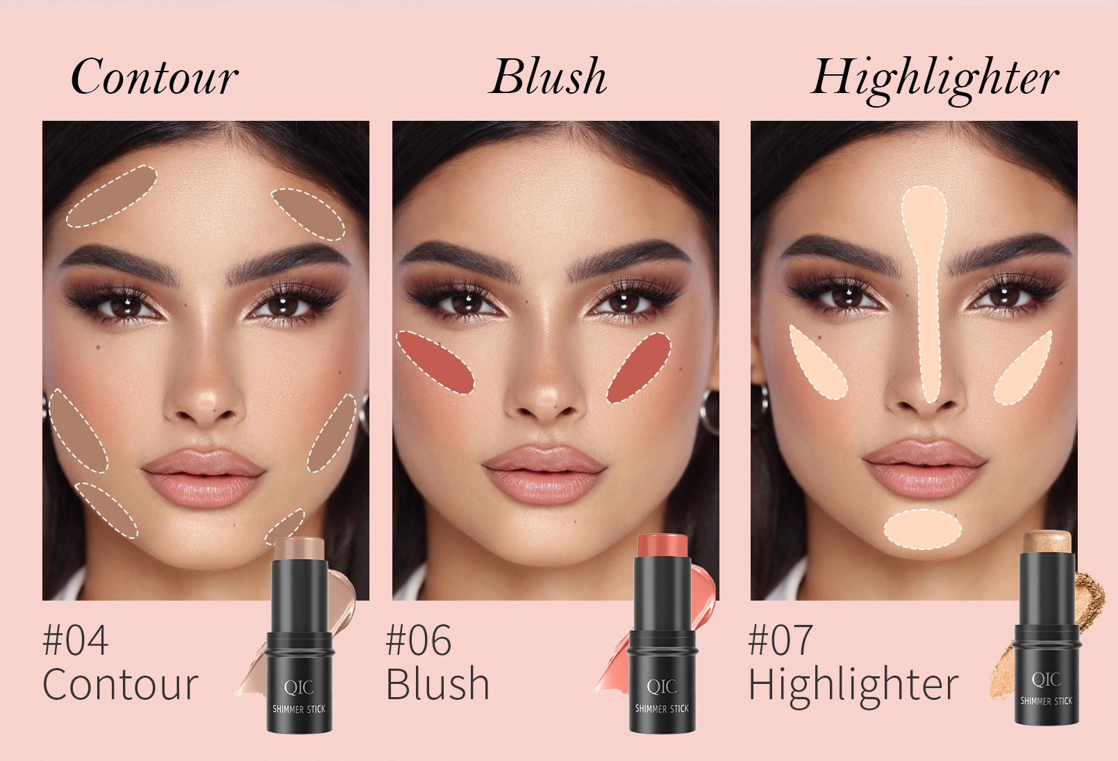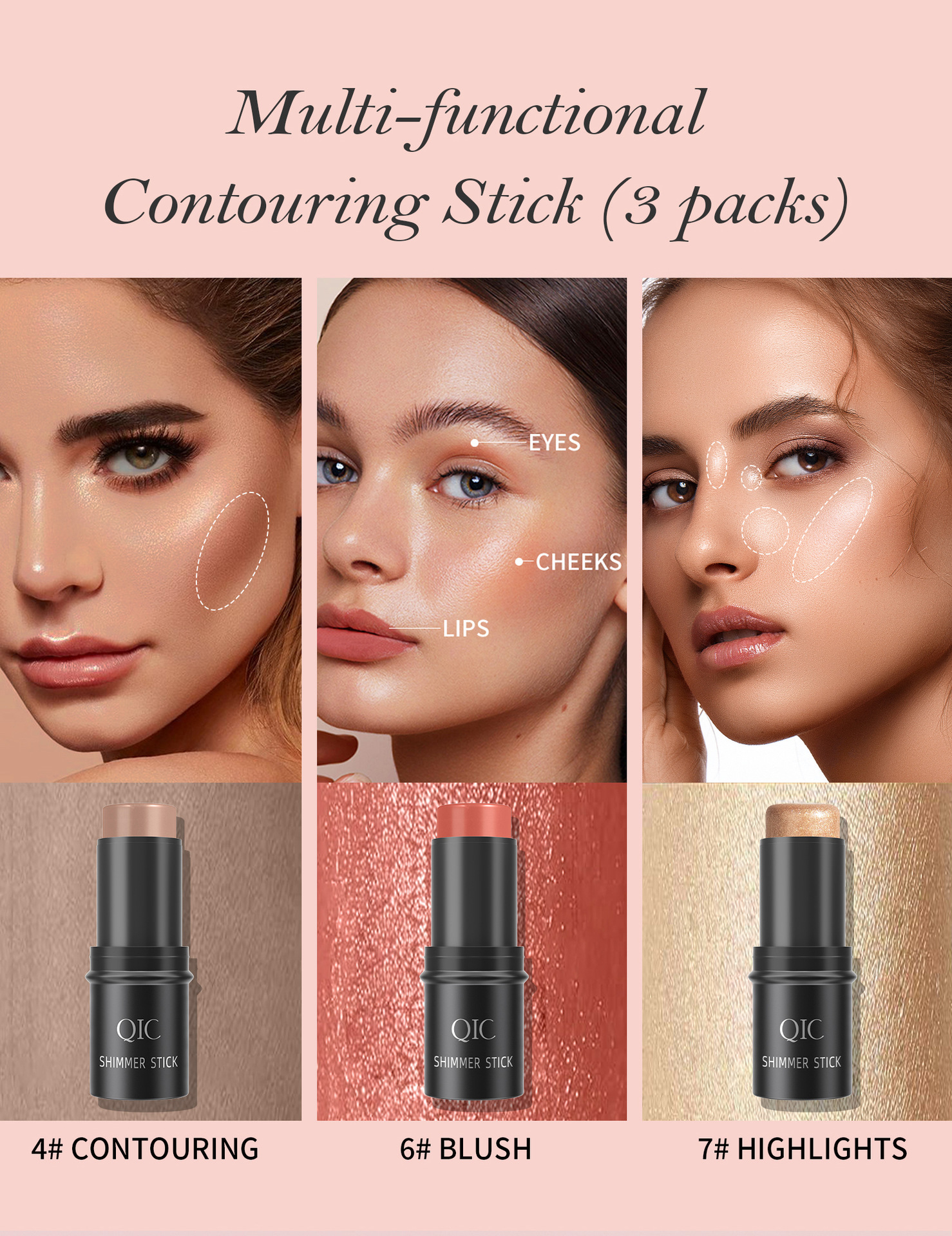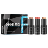 QIC三色多功能修容棒套装 bronzer脸部阴影高光腮红3in1化妆棒