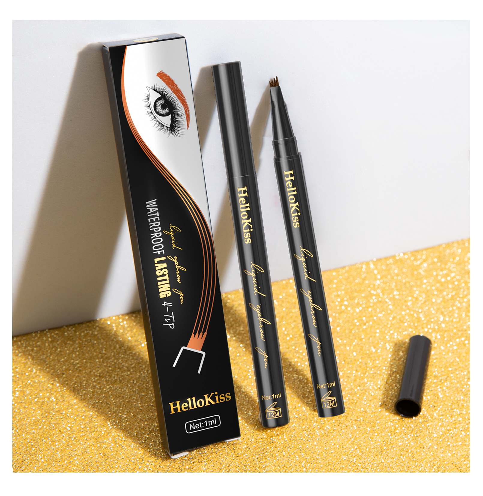 Hellokiss四爪液体眉笔防水防汗不晕染野生眉四叉眉笔亚马逊彩妆