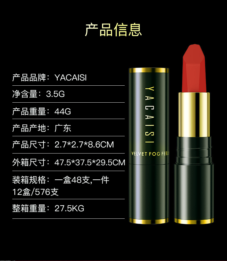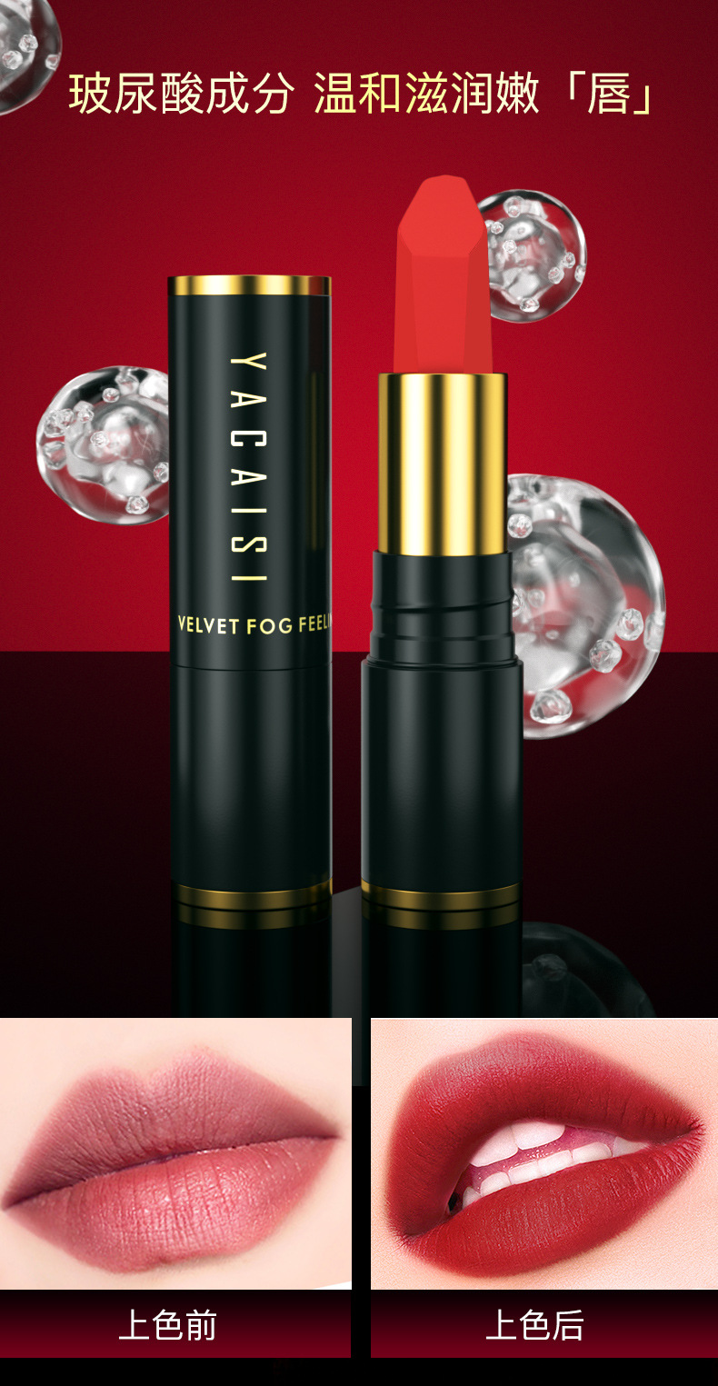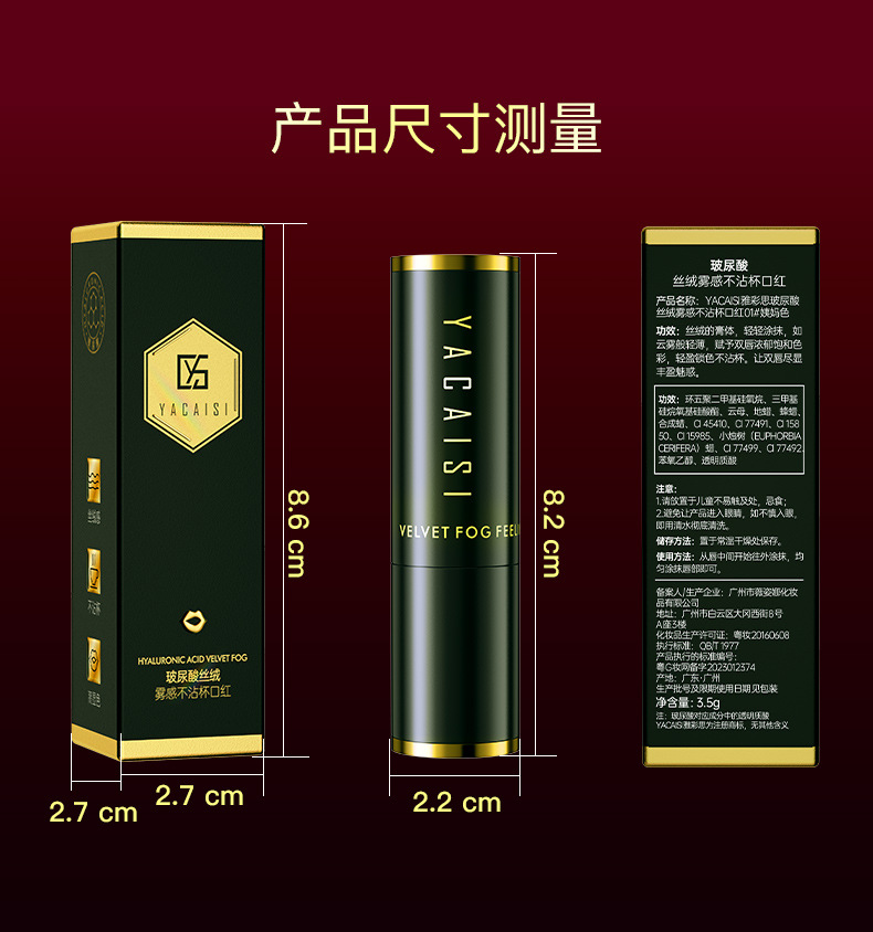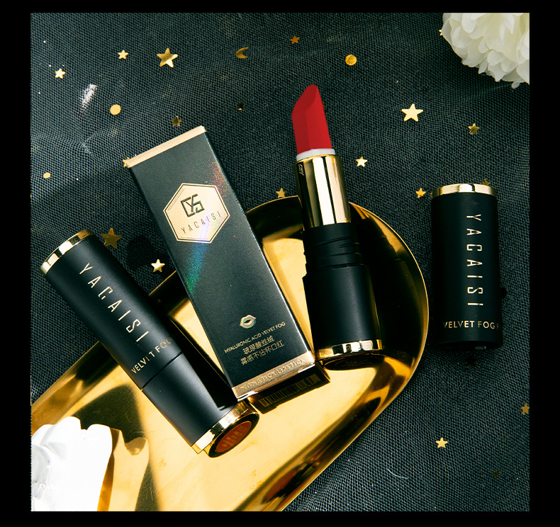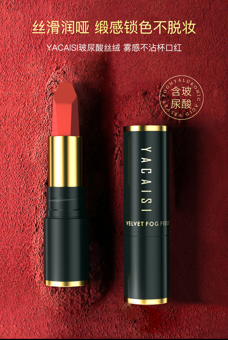 雅彩思玻尿酸不掉色口红滋润保湿防水不沾杯唇膏抖快直播一件代发