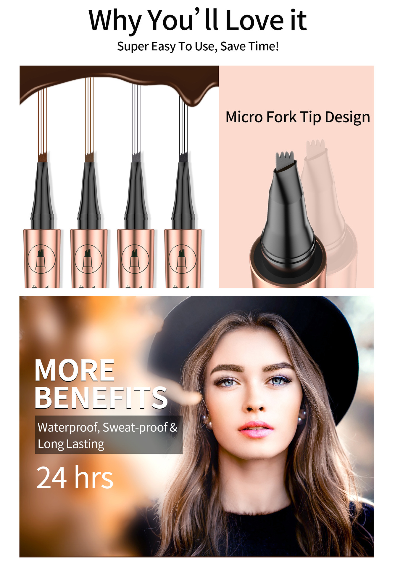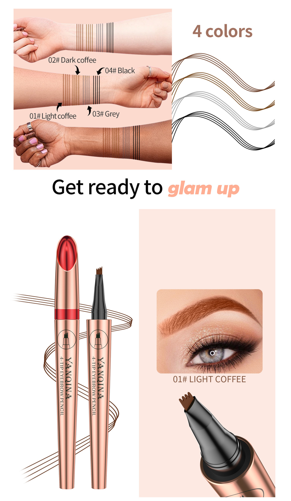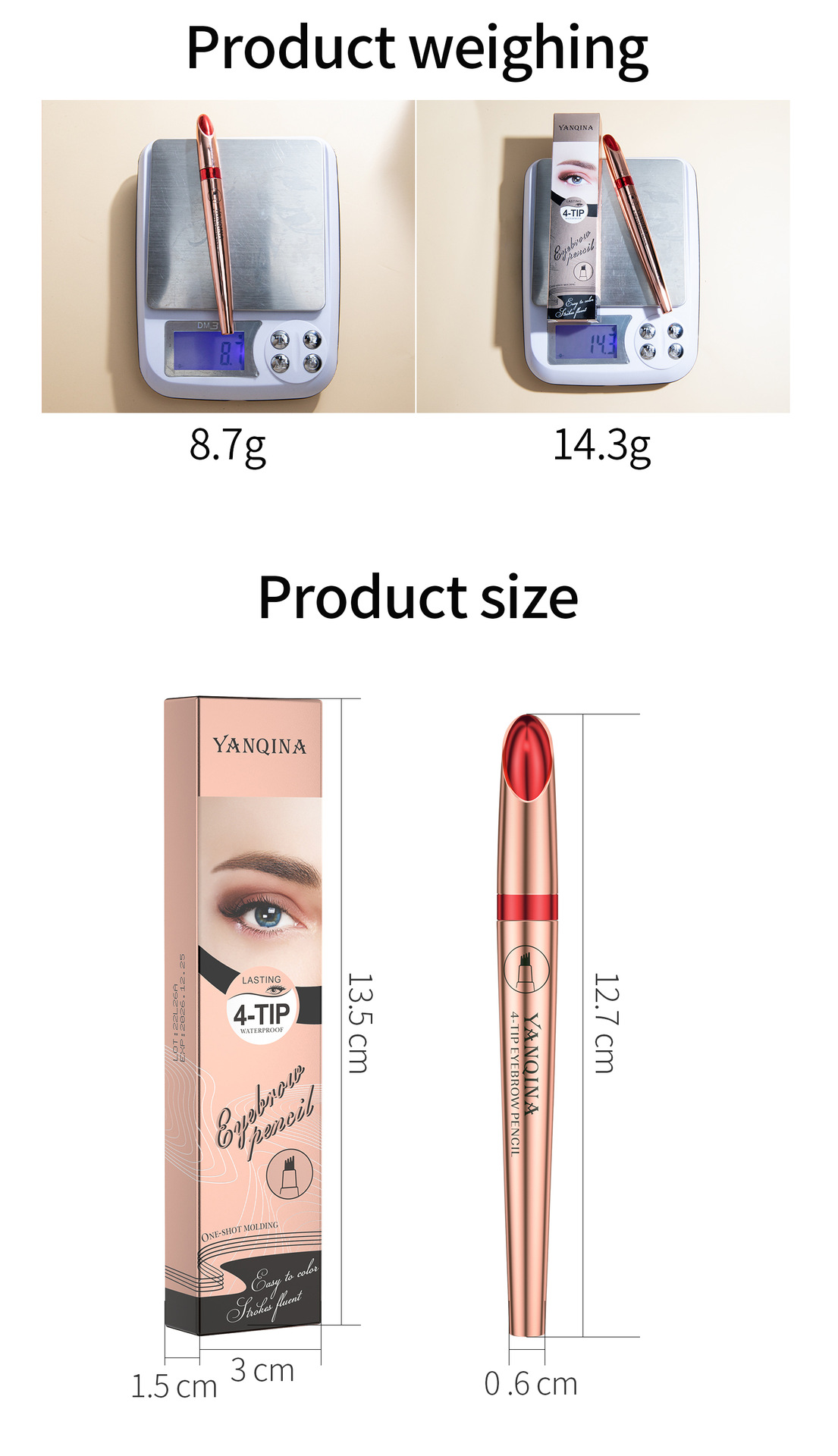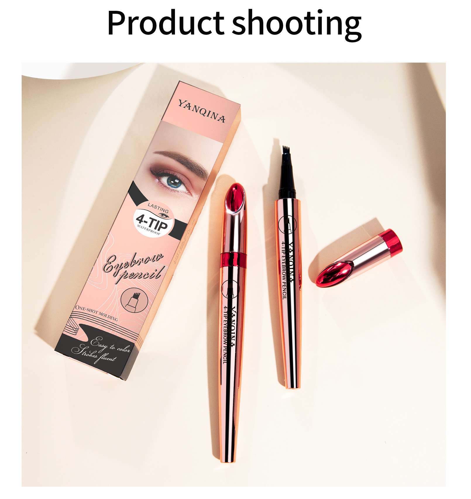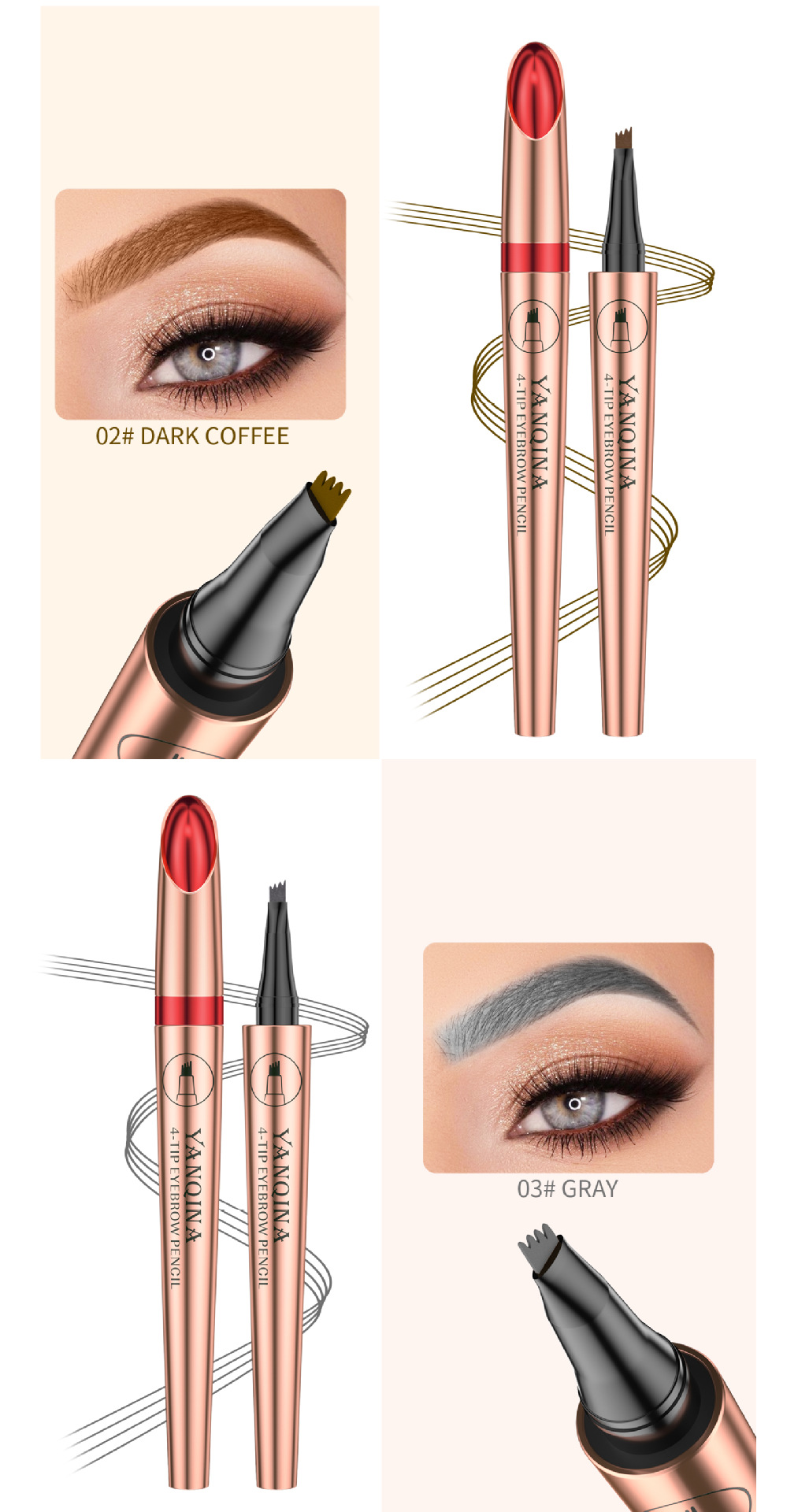 YANQINA四爪液体眉笔 防水防汗不结块野生眉四头分叉眉笔跨境彩妆