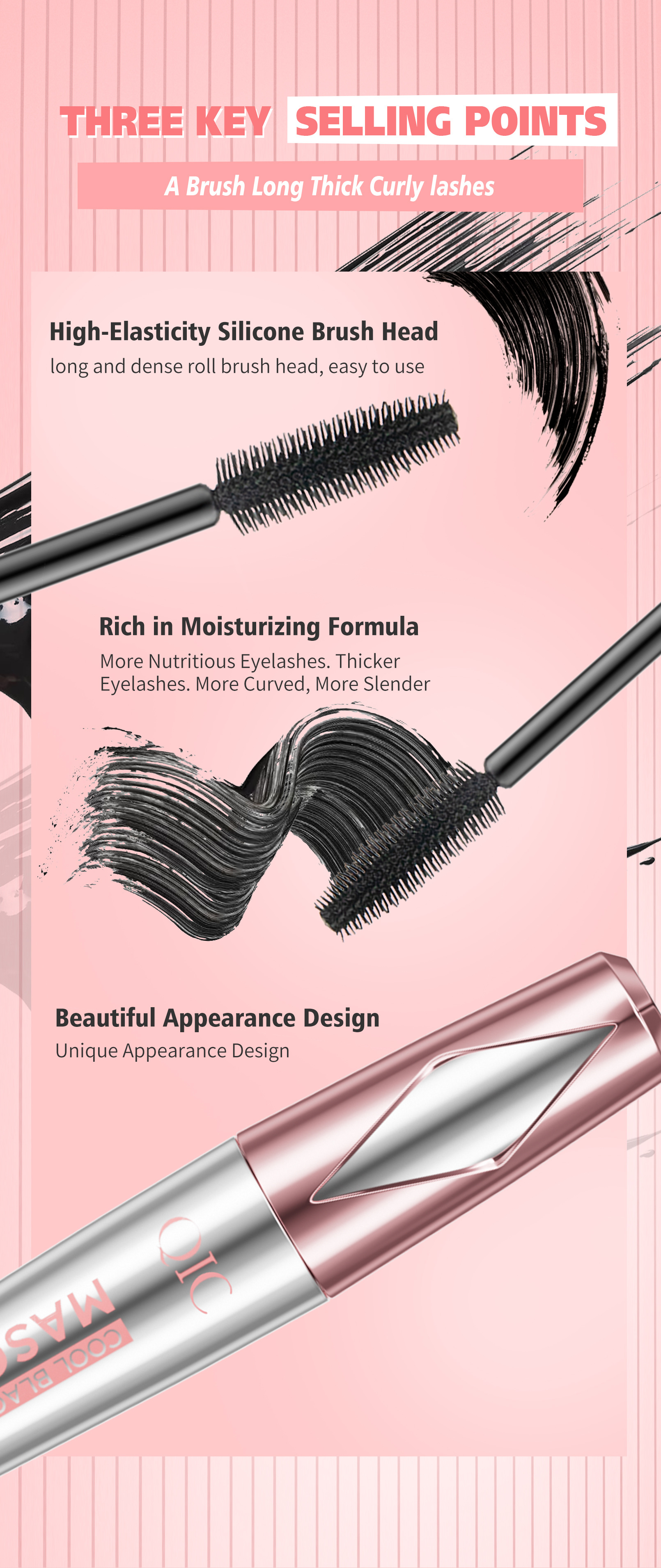 2025新品QIC玫瑰银睫毛膏 3D防水防汗不晕染纤长浓密卷翘跨境彩妆