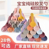 儿童硅胶碗勺叉 婴儿吃饭喂养餐具 宝宝硅胶辅食勺子套装厂家批发