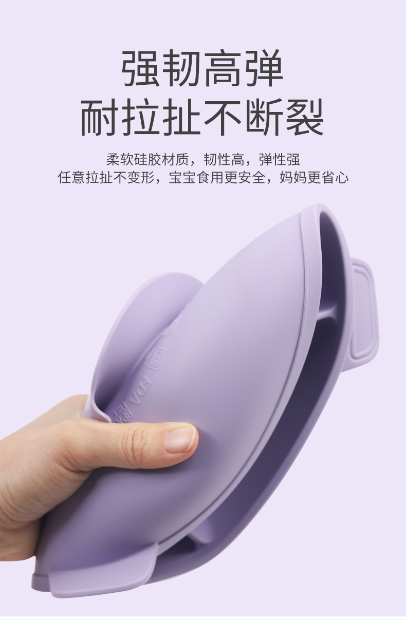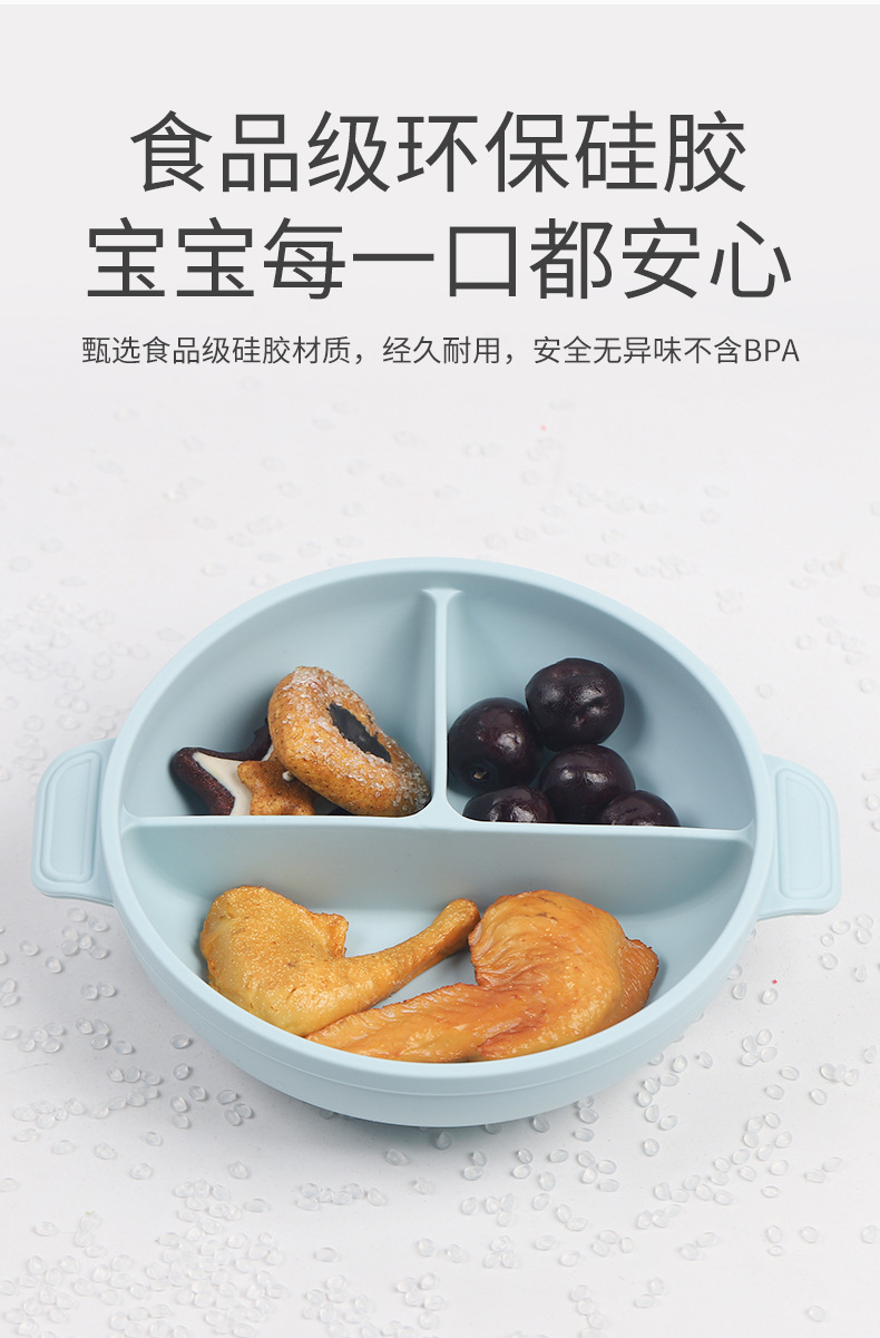 带盖圆形硅胶分格碗套装 大吸力儿童辅食分格餐盘婴儿碗 现货批