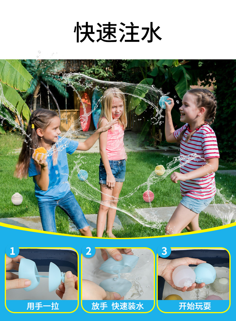 亚马逊爆款硅胶水球注水可重复使用水球打水仗硅胶水球现货批发