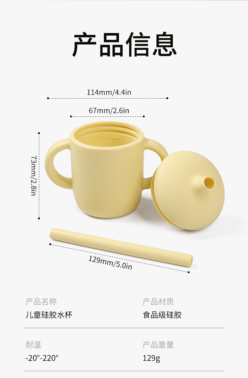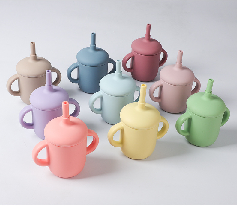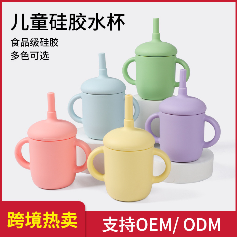 硅胶儿童水杯耐摔带把手婴儿吸管杯独立吸管婴儿硅胶水杯现货批发
