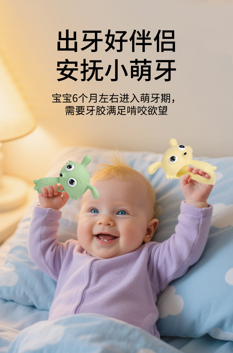 硅胶牙胶叠叠乐 婴儿恐龙宝宝牙胶安抚玩具防吃手可水煮批