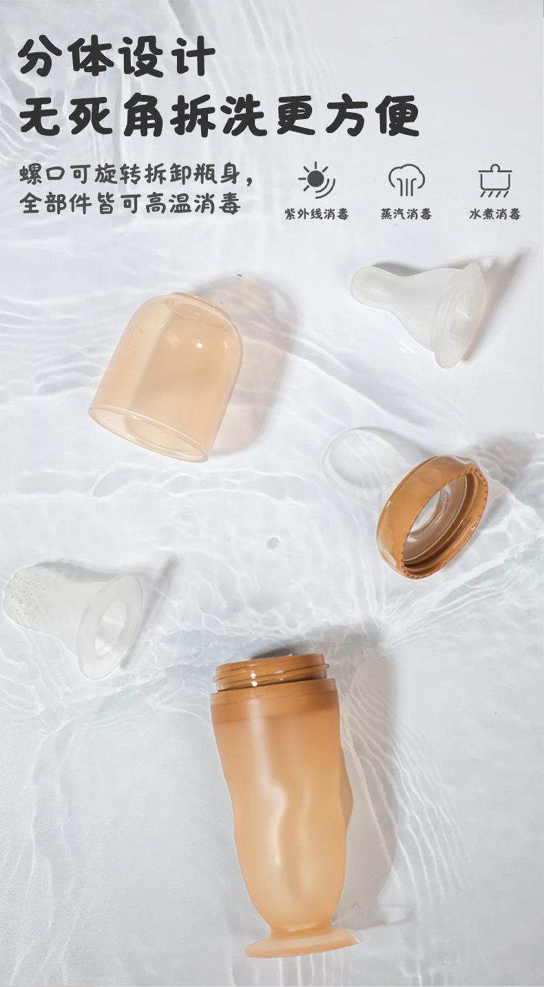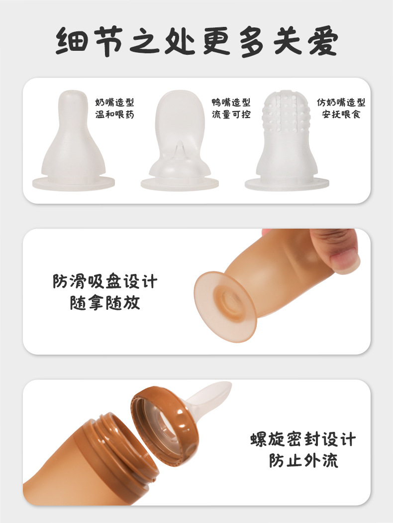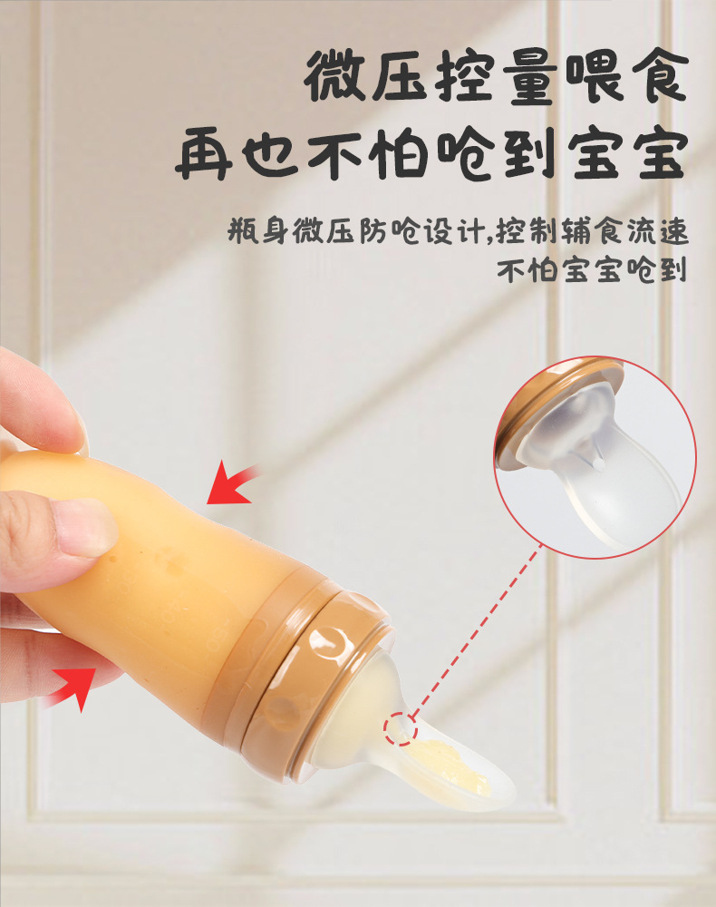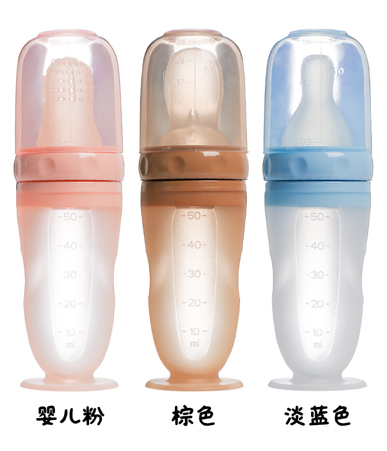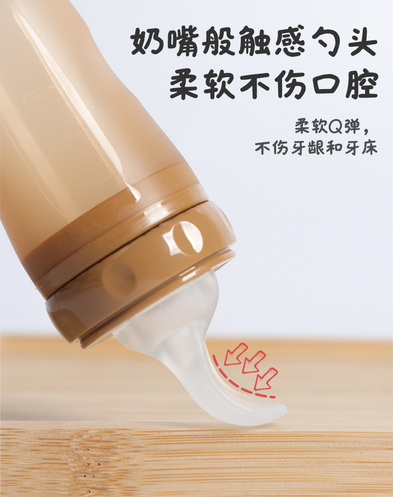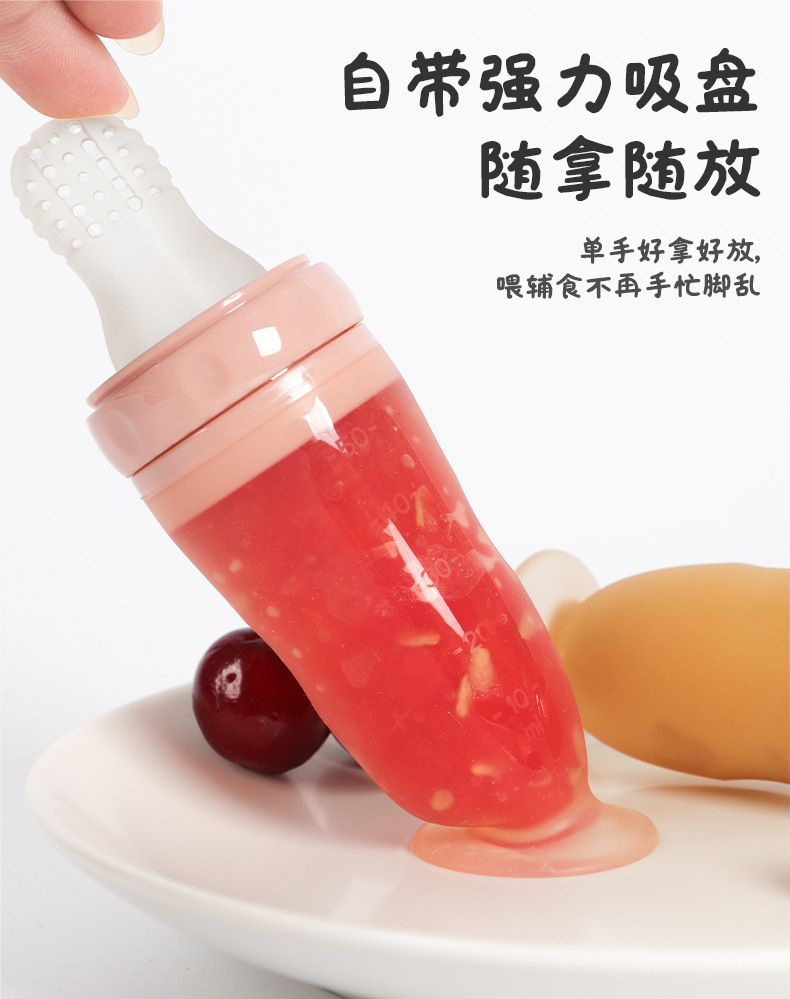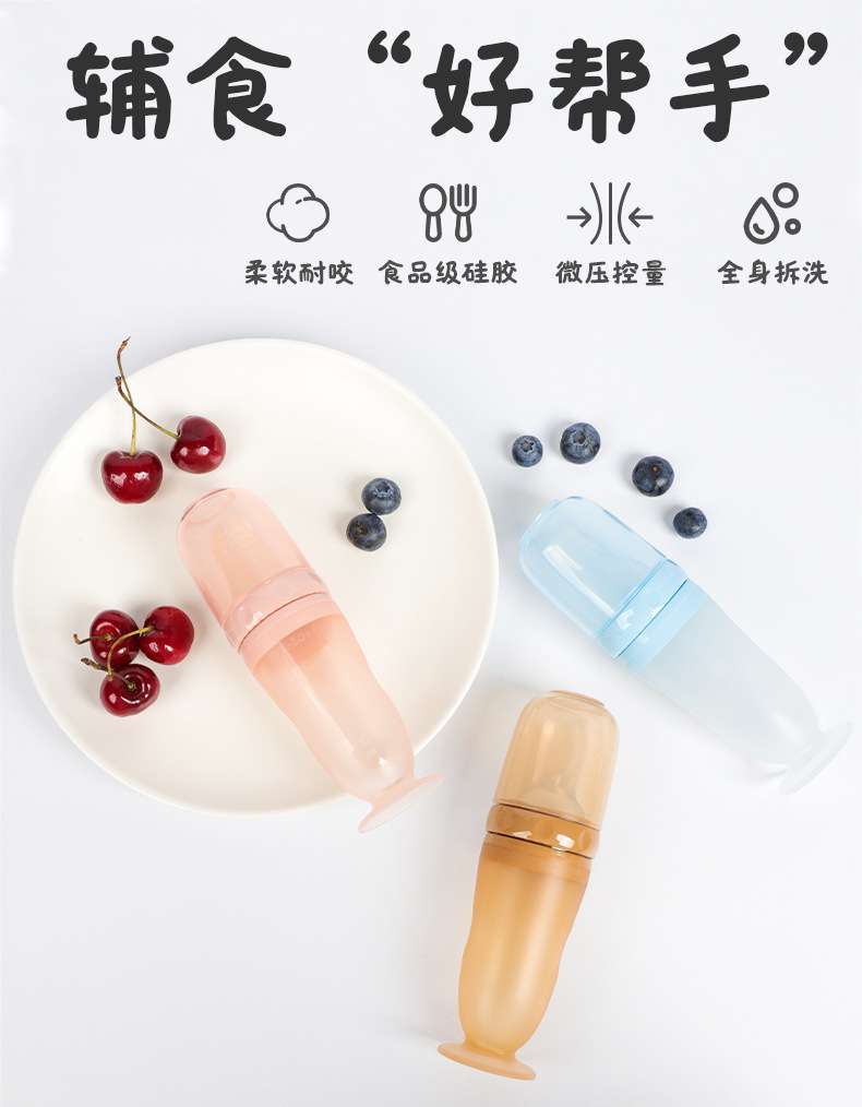 带吸盘液态硅胶奶瓶米糊勺 挤压式婴儿硅胶勺咬咬乐喂养神器 批发