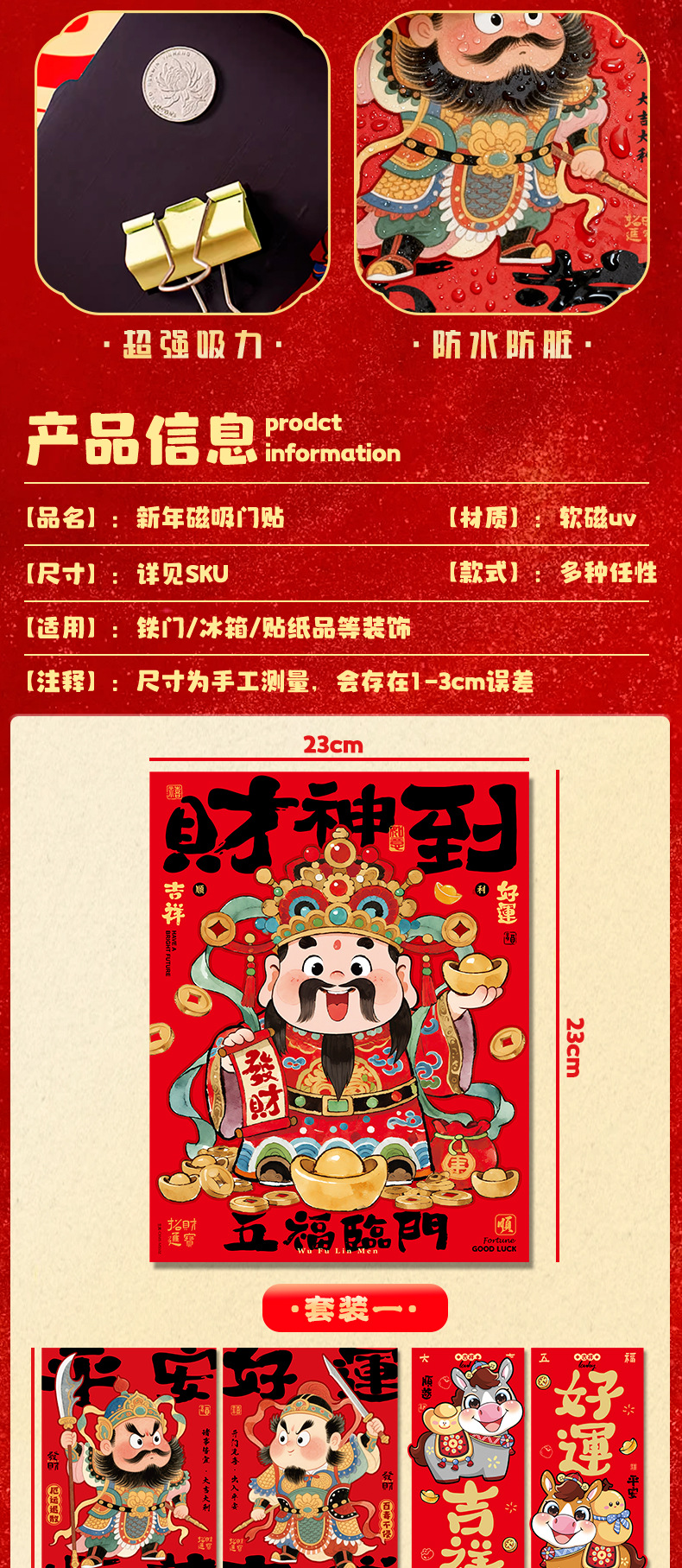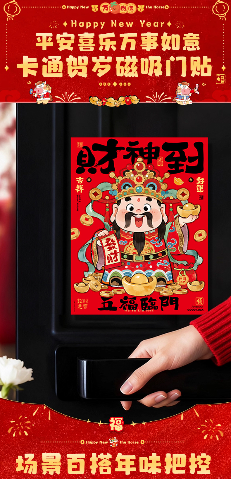 2026新款马年磁吸门贴春节对贴入户门福字贴装饰创意新年布置门神