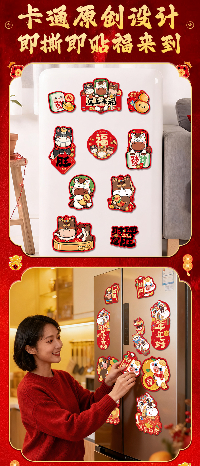 冰箱贴新春新年装饰布置磁吸贴2026马年新款过年搬家入宅仪式用品