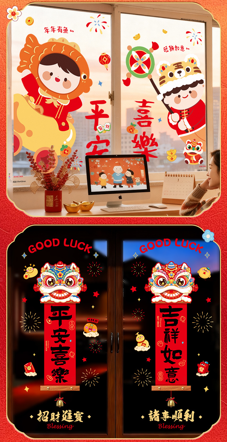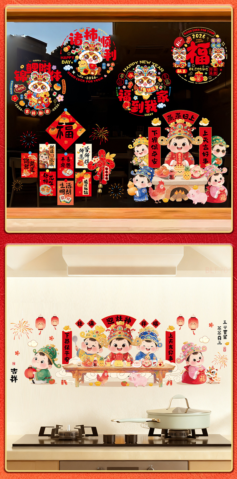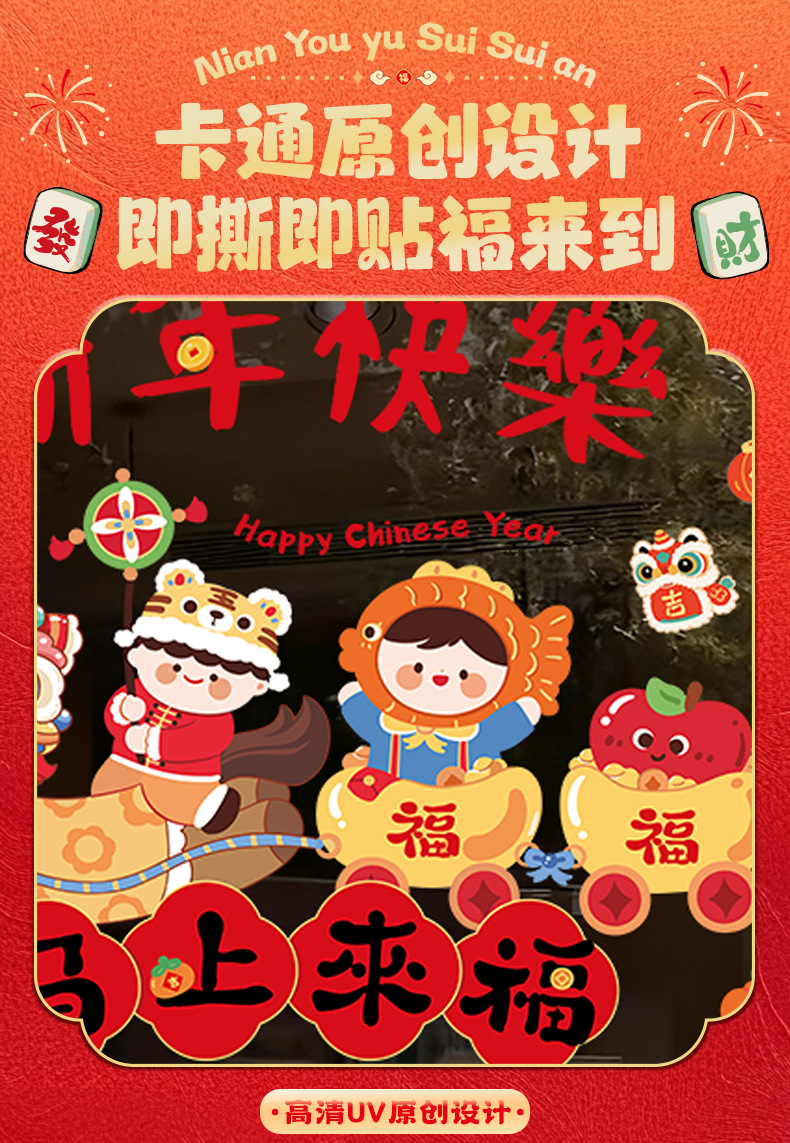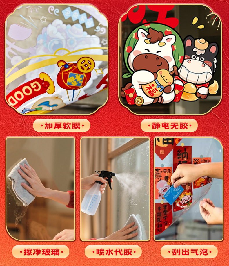 ✅同款窗贴玻璃贴静电贴新年装饰窗花福字门贴橱窗贴纸2026马年