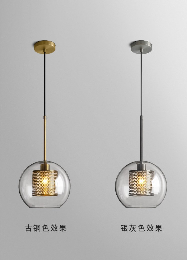 北欧简约设计师复古工业风loft餐厅客厅吧台床头铁网玻璃圆球吊灯