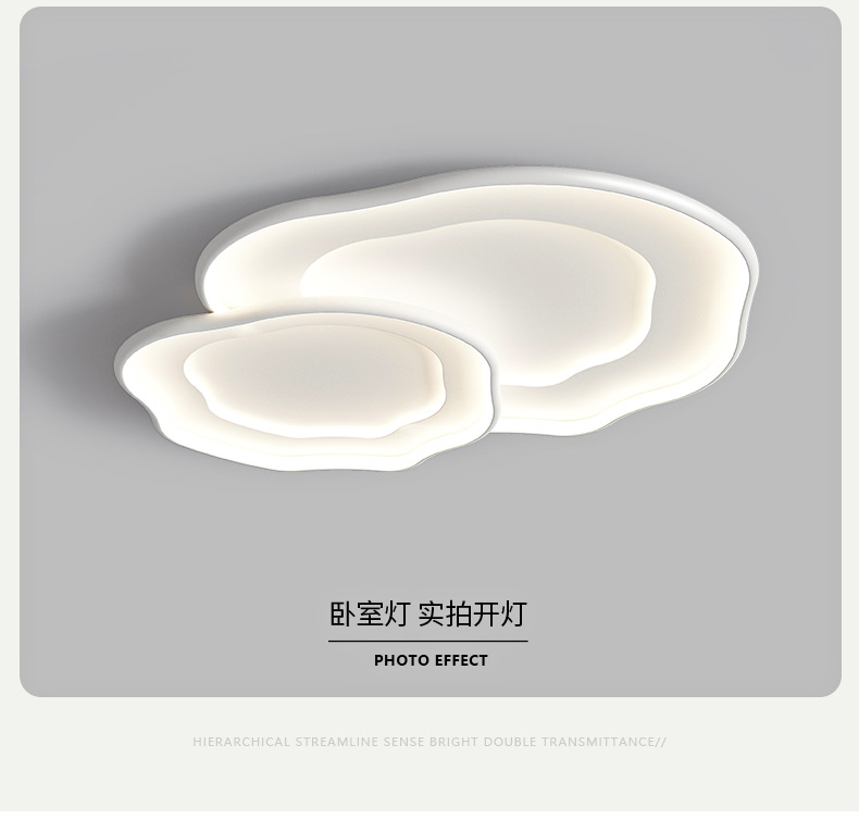 侘寂风胡桃木纹卧室吸顶灯日式复古云朵主卧房间灯法式奶油护眼灯