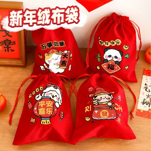 新年束口袋抽绳拉绳绒布收纳袋春节过年礼物包装袋学生新年小礼品