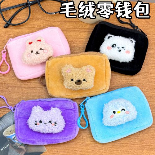 卡通动物零钱包学生迷你便携耳机包毛绒小动物钥匙包可爱收纳包