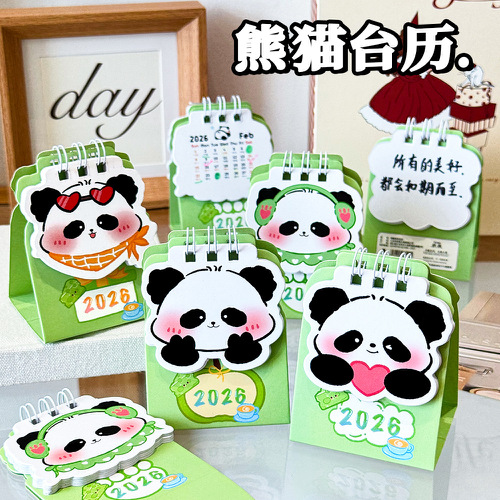熊猫台历少女心桌面自律打卡迷你小台历学生文具小礼品2026年日历