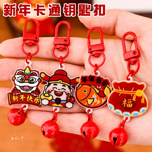新年钥匙扣可爱财神亚克力铃铛挂饰春节小礼物学生新年小礼品挂件