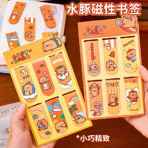 卡皮巴拉磁性书签6枚入磁铁书页夹小学生文具奖励小礼品水豚书签
