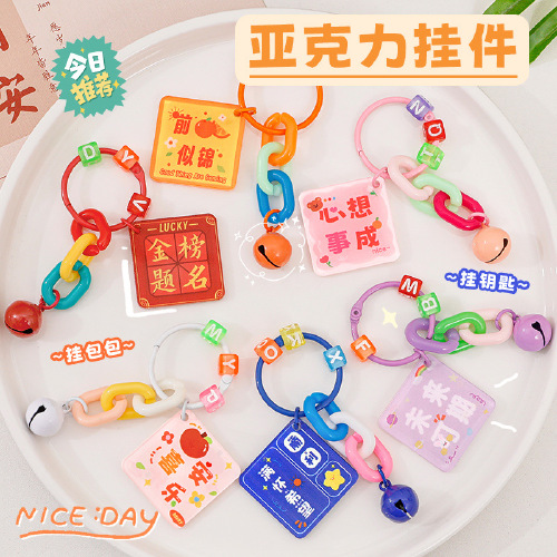 彩色文字钥匙扣开学季小礼品钥匙圈学生亚克力包包装饰卡通钥匙链
