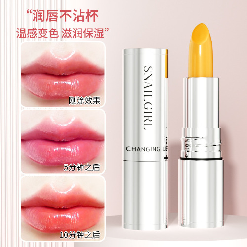 SNAILGIRL亮片带闪变色口红 千人千色滋润不沾杯不掉色温变唇膏